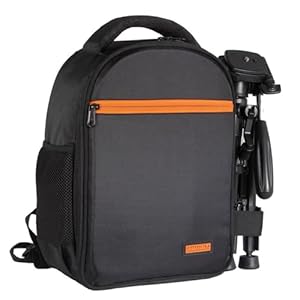 Tygot Water Resistant Camera Backpack with Extra Front Pocket Photographers Bag with Rain Cover Tripod Holder Compatible for Sony Nikon Canon Panasonic DSLR (Black & Orange)