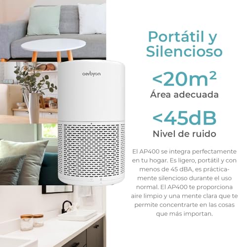 aerbyon AP400 Air Purifier for Home, Small Office, Cleans up to 215 Sq. Ft, 4-stage filtration, HEPA filter for odors, dander, pollen, toxins, smoke, 3-year warranty, Power Cable Inside