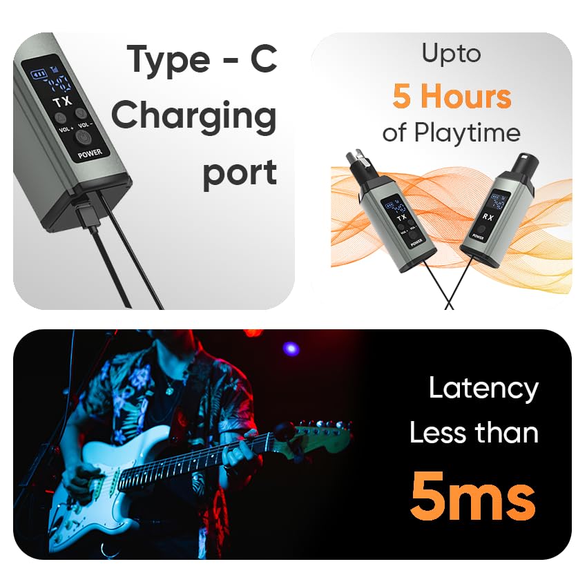 164 Ft Wireless Range: Offers a wide 164 ft range for smooth, cordless performances, making it ideal for stage shows, live concerts, rehearsals, and studio sessions without restricting movement.
