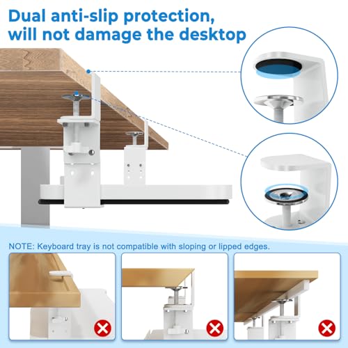 ⌨ Suitable for L-shaped Desktop: Kayfia keyboard tray under desk with a 45 ° rotating sturdy C-clamp, also with a protective pad without damaging the desk, suitable for standard and L-shaped desktop. Modern white can be perfectly integrated into your work space, making it ideal for various work environments.
