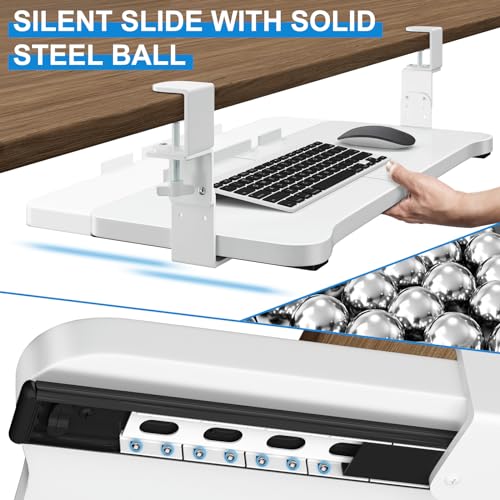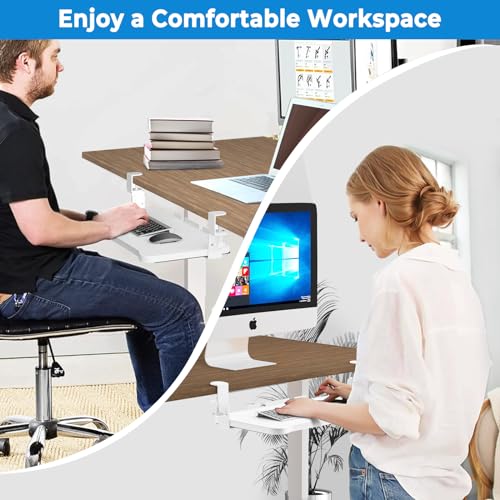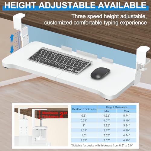 Kayfia Height Adjustable Keyboard Tray, Under Desk Keyboard Tray Slide Out With 45° Adjustable C Clamp For L Shaped Desk, 26″ (31″ Including Clamps) x 11.7″ Computer Drawer For Ergonomic Typing, White
