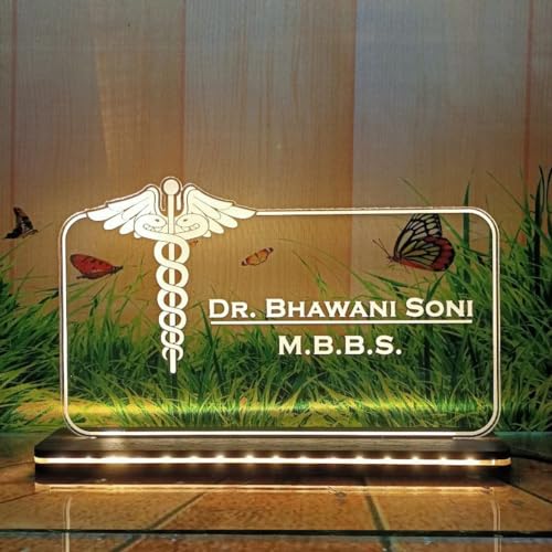 OSMLY Acrylic Laser Engraved Table Sign Stand, Laser Engraved Acrylic Sign or Name Plate for Doctor, Teacher, Advocate, Medical, Proprotor office or Promotion Gift(6 x 8 inch) Warm White