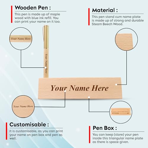 Convenient Pen Holder: The name plate comes with a matching wooden pen holder, providing a practical and organised workspace.