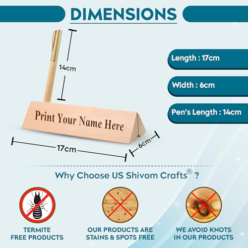 SHIVOM CRAFTS Personalized Wooden Desk Name Plate with Pen