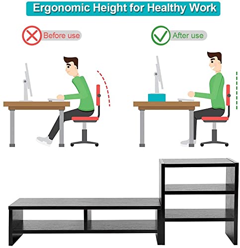 Ergonomic Height: This desk shelf for monitor is set to the appropriate height in line with scientific principles, lifting your monitor or laptop to absolute best line of sight to relieve eye strain, neck and back discomfort, and provide more work at work comfortable commentary